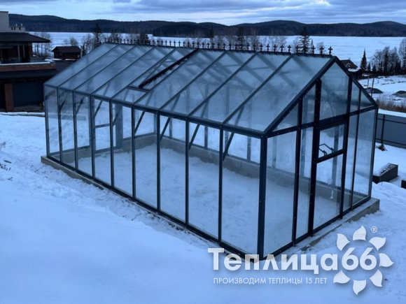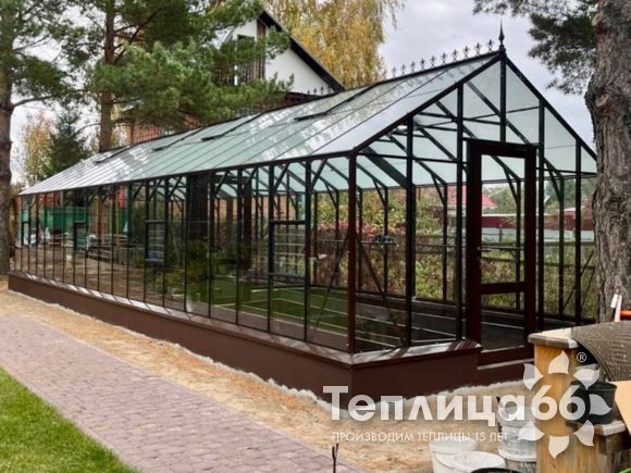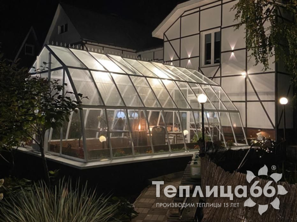 Это теплица премиум класса, изготовленная из поликарбоната, собранная на алюминиевом каркасе, которая пользуется высоким спросом на рынке.